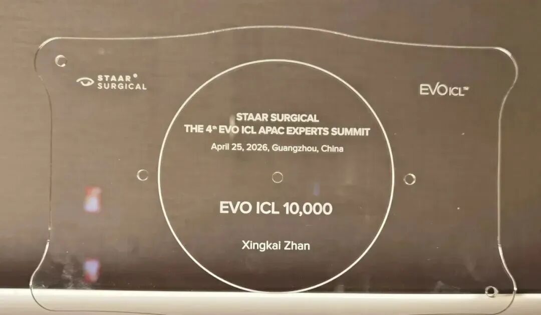 榮膺“EVO ICL手術超10000例”成就獎4月25日,在廣州舉辦的“第四屆EVO ICL亞太區專家高峰研討會”上,詹行楷教授榮獲大會頒髮的 “EVO ICL手術超10000例”成就獎 ,手術量名列全國前茅。EVO ICL(有晶體眼後房型人工晶體植入術)是目前國際主流的近視矯正技術,對手術醫生的操作精度和臨床經驗要求極高。詹行楷教授是國內較早開展ICL手術的專家之一,擁有超過30年的眼科臨床經驗,至今已完成ICL晶體植入手術超萬例,以匠心醫技幫助數以萬計的近視患者重獲清晰視界。